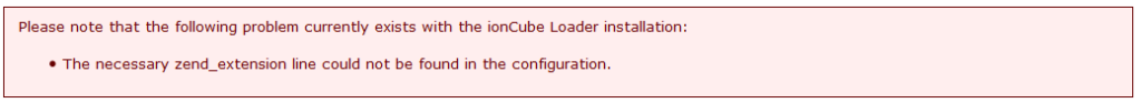 The following problem has been found with the ionCube Loader installation: