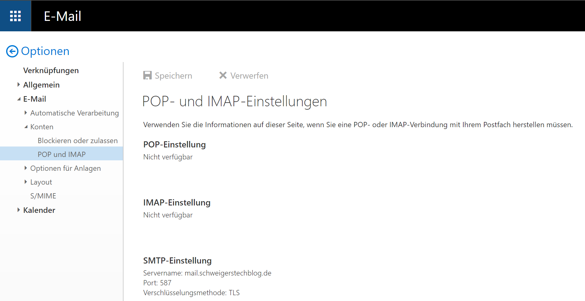 SMTP Einstellungen im „Outlook on the Web“ anzeigen