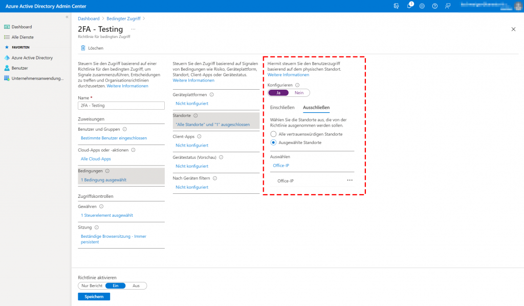 Sobald die Richtlinie aktiviert wurde, werden Anmeldeversuche über die hinterlegten Public IPs keine Multi Faktor Authentifizierung mehr benötigen.